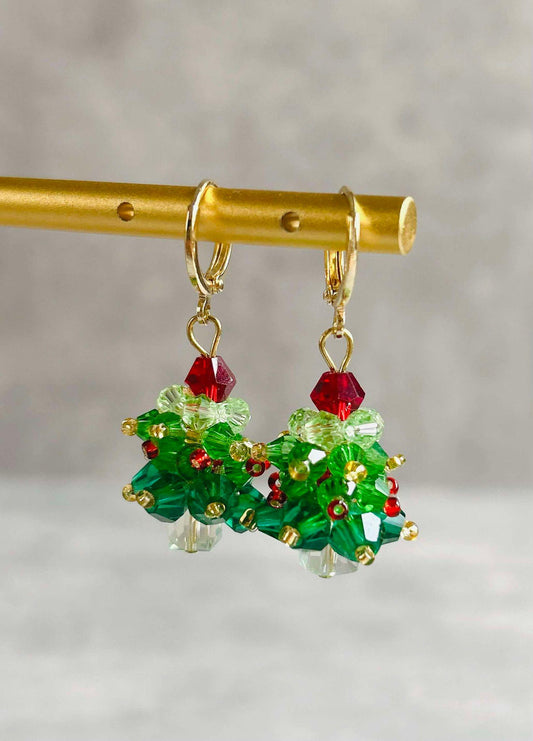 Beaded Christmas Tree Earrings