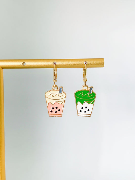 Unique Bubble Tea Huggie Earrings