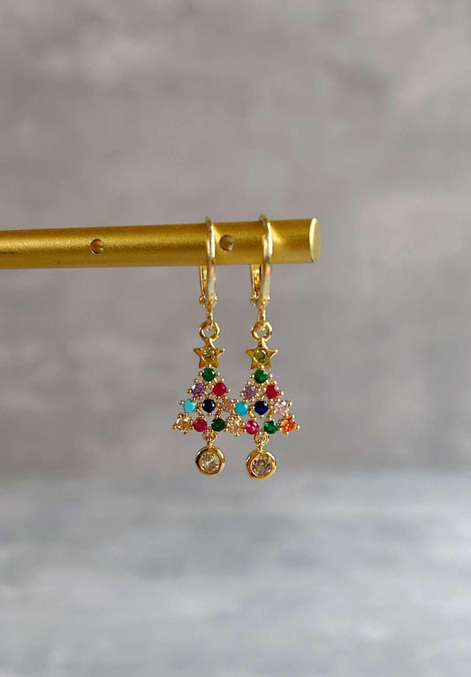 Unique 14K Gold Plated Christmas Tree Earrings