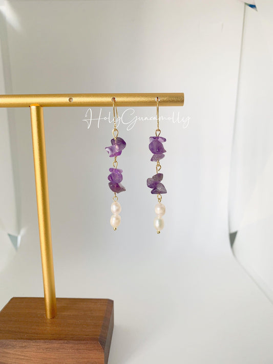 Unique Amethyst and Pearl Earrings