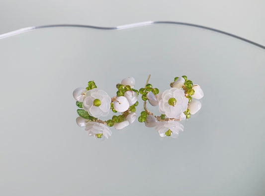 Unique Beaded Camellia Hoop Earrings