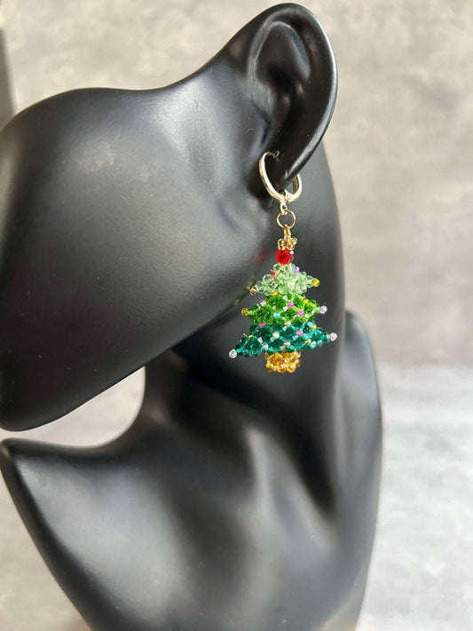 Unique Beaded Christmas Tree Earrings