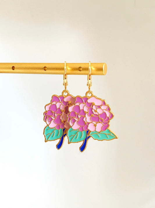 Unique Hydrangea Huggie Earrings