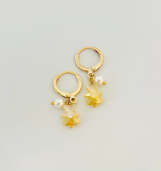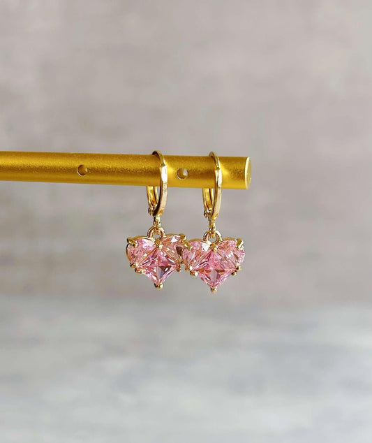 Dainty 14K Gold Plated Pink Heart Huggie Earrings