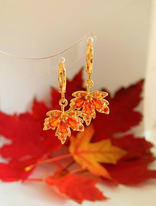 Dainty Autumn Leaf Hoop Earrings