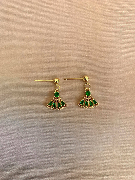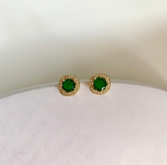 Dainty 14K Gold Plated Green Zircon Stud Earrings