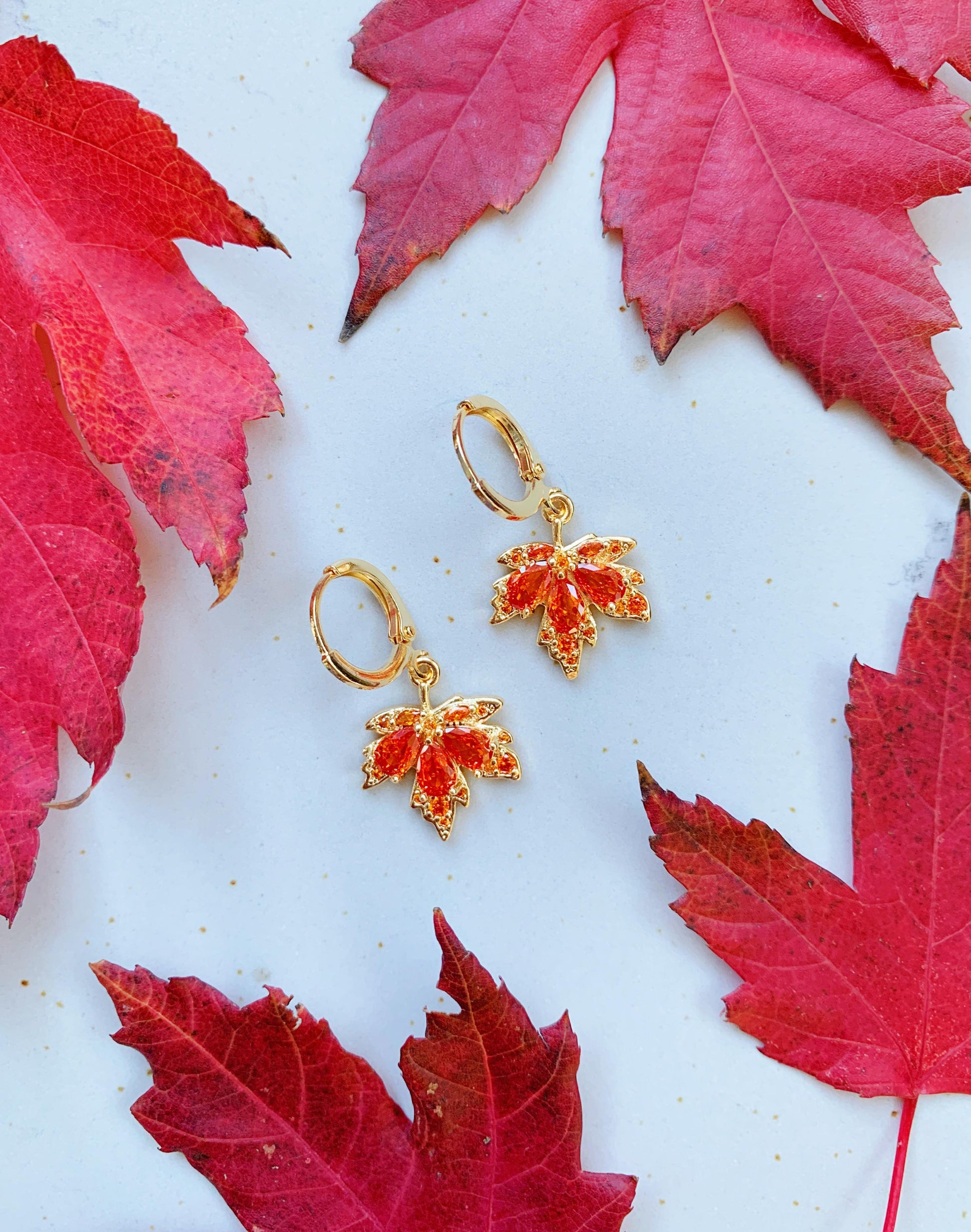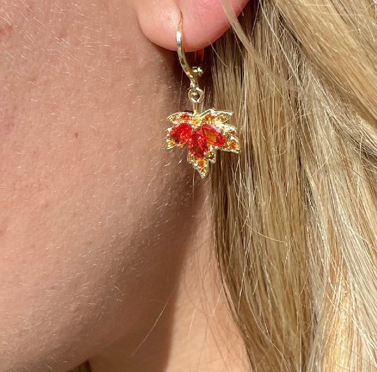 Dainty Maple Leaf Hoop Earrings